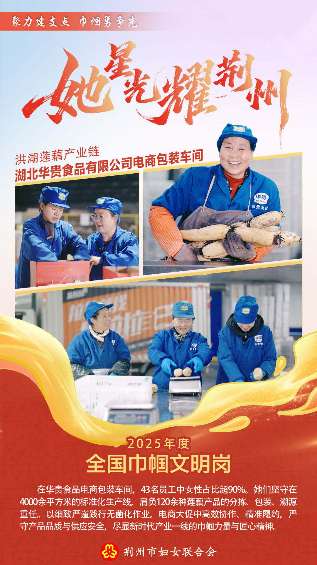 在洪湖之滨的华贵食品电商包装车间,一条条自动化生产线高效运转。一支女性占比超过90%的打包团队,正以特有的细腻与严谨,守护着从荷塘到餐桌的“第一口鲜”。分拣、称重、包装、质检……每一道工序都一丝不苟,确保120余种莲藕产品品质如一、安全可溯。