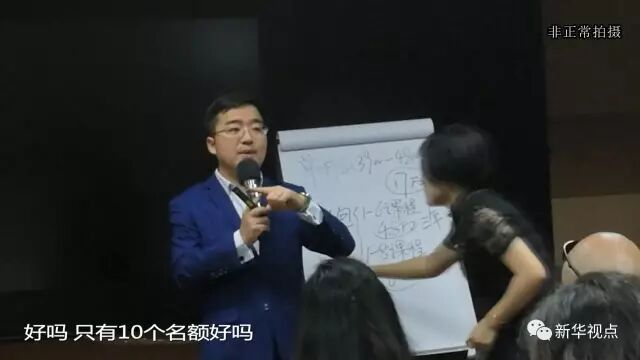 图为“脑立方全脑应用亲子导师”在宣讲会上向家长推销6万8千元的课程。(非正常拍摄)