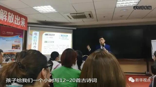 记者参加了一堂面向家长的宣讲会。会场满满当当坐了来自全国各地家长近百人,“脑立方全脑应用亲子导师”丁士千向家长宣讲“脑立方”的神奇效果:“超感心像力”课程提升孩子专注力,蒙着眼睛也能辨别物体颜色;“脑屏成像”课程增强孩子记忆力,对任何文章篇目过目不忘;“超感创作力”课程激发孩子创作力,1小时写20首古诗,再不愁背书和写作文。