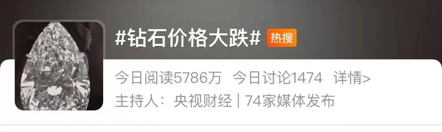 伴随人造产品异军突起,钻石正迅速失去它们的光芒。一年前,1 克拉天然钻石的价格是 6700 美元,目前的售价是 5300 美元。钻石价格在持续跳水中,预期未来钻石价格还会继续走低。