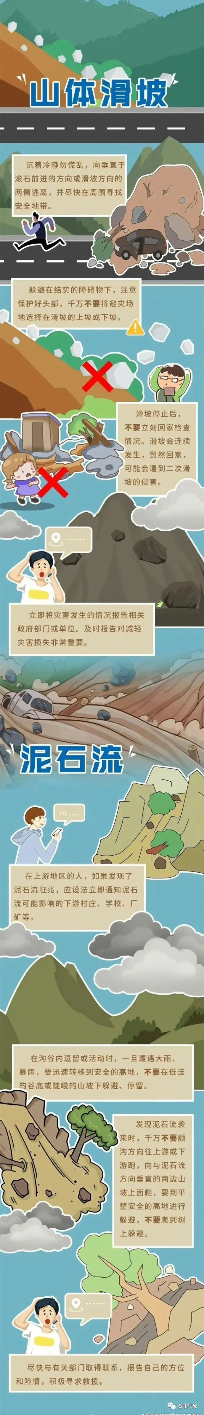 泥石流容易发生在凹形坡、阴面斜坡和山脚等区域,要禁止盖房,放弃农耕,植树造林,避免水土流失。山区居民特别注意暴雨天气,当出现较为极端的短时强降雨或连续降雨天气,处于危险区内的人员应尽早撤离。