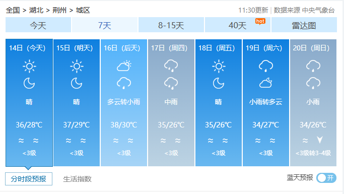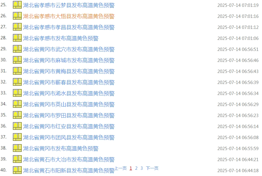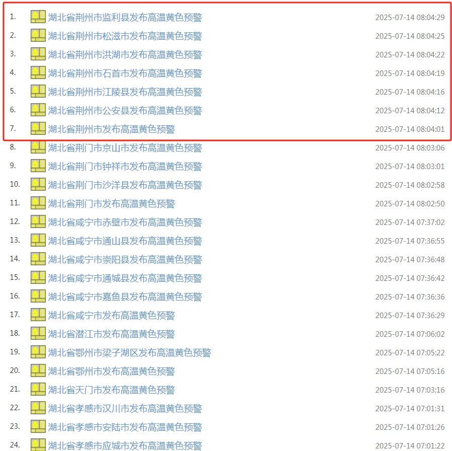 荆州连发7条高温黄色预警
