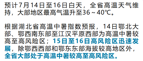 2025年7月14-16日湖北省高温中暑气象风险等级