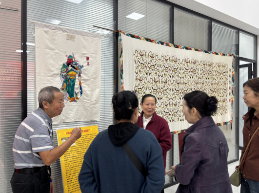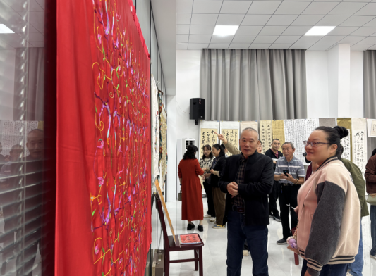 为更好地挖掘社区文艺人才,集中展示居民艺术创作成果,前期做了大量准备工作。两个月前,通过社区公告栏、微信群发布作品征集通知,鼓励辖区单位、居民积极参与;安排专人负责接收作品,对作品进行登记编号,记录作者信息、作品名称、类型等;展览场地进行合理规划,划分不同作品展示区域,如楚绣区、绘画区、书法区等,确保布局合理,便于参观。