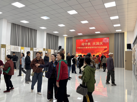 江汉风报道:国逢盛世普天庆,月到中秋分外明,在国庆、中秋双节来临之际。9月26日上午,荆州区河套社区新时代文明实践站联合荆州市鼎盛物业管理有限公司,举办“迎中秋•庆国庆”河套社区书画展。