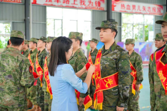 全体新兵庄严宣誓,“听党指挥、能打胜仗、作风优良”的铿锵誓言响彻会场,彰显了荆院学子的忠诚品格与使命担当。现场学院领导还为新兵佩戴象征荣誉的大红花并赠送纪念品,现场掌声雷动,气氛庄重热烈。