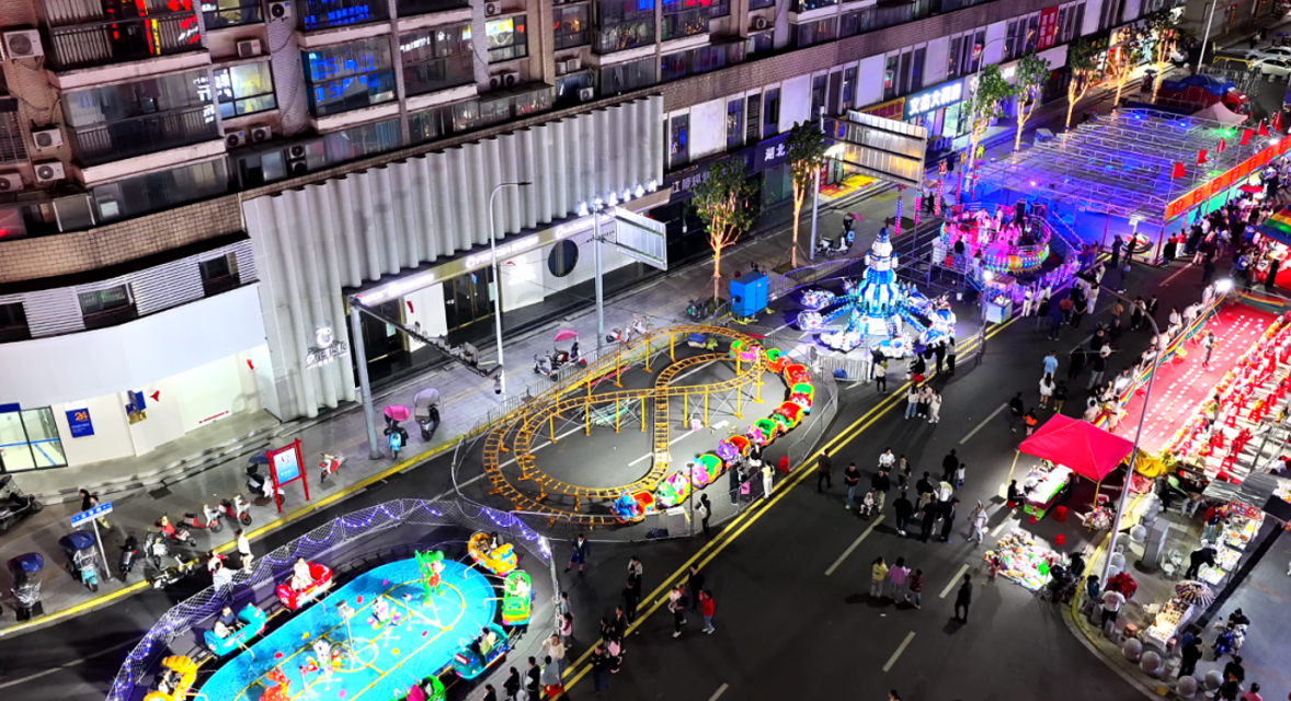 随着夕阳余晖渐渐消退,中央金街的热闹氛围愈发浓厚。灯火阑珊下,市民们或悠闲漫步,或驻足欣赏舞台表演,游乐区笑语不断,美食街烟火升腾,大家都在期待着夜晚的精彩。“从抖音、江陵网上知道今天有活动,感觉比之前热闹多了,特别期待!” 市民段婷婷说。市民王思雨也表示:“人好多、好热闹,能和好朋友、家人一起在这里玩,特别开心。”