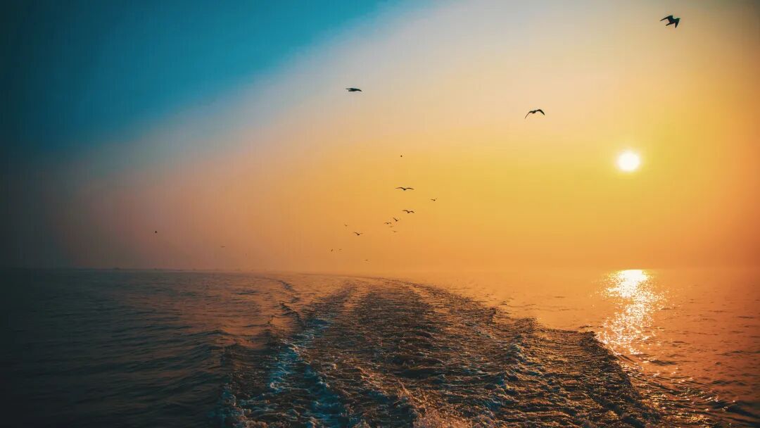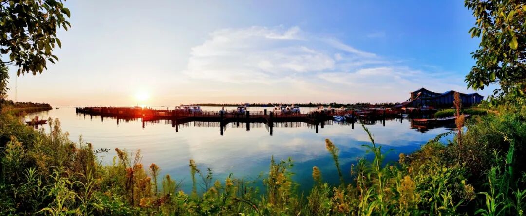 傍晚乘船从洪湖旅游港出发,捕捉内荆河与长江交汇的壮美瞬间。