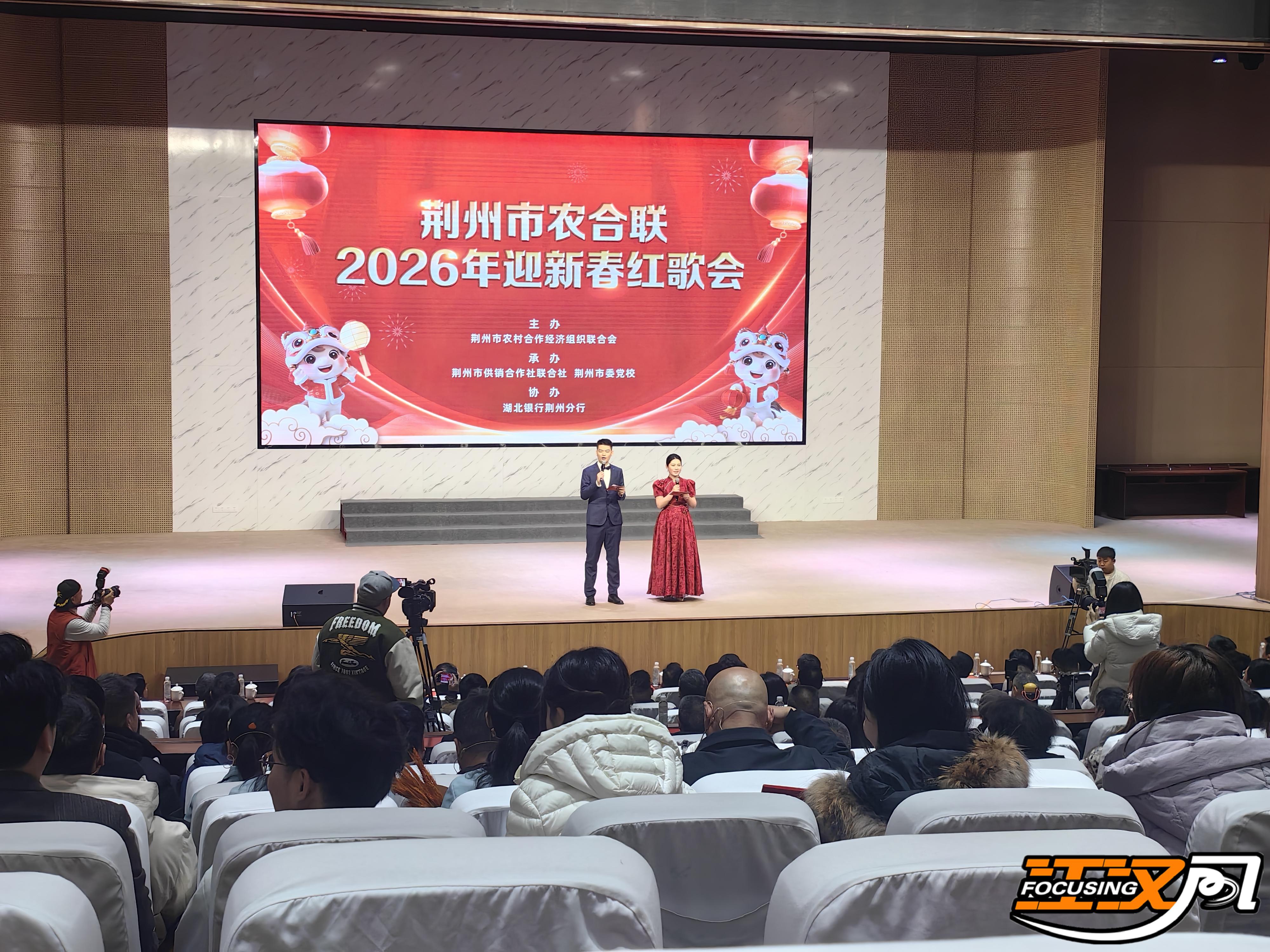 江汉风报道:1月17日上午,由荆州市农村合作经济组织联合会主办,荆州市供销社、荆州市委党校承办,湖北银行荆州分行协办的荆州市供销“农合联”2026年“迎新春”红歌会在荆州市委党校举行。