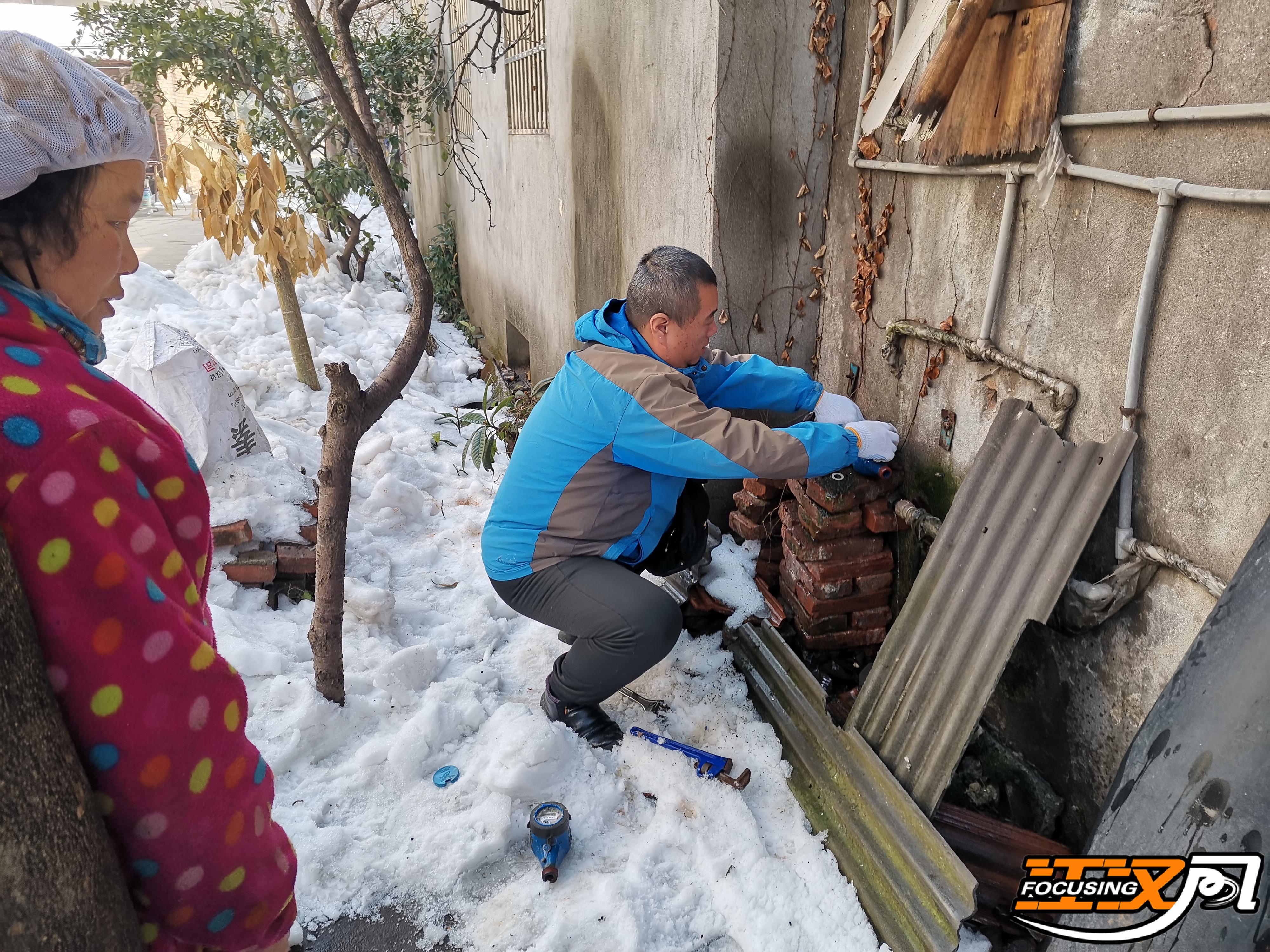 1月20日,荆州水务集团抢修队员在雪地中紧急为居民更换冻损水表。寒潮当前,他们以最快速度响应,用行动融化冰雪,全力守护市民用水生命线。(通讯员:李美星)