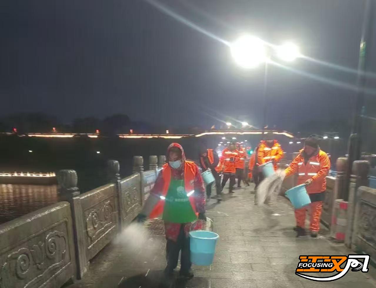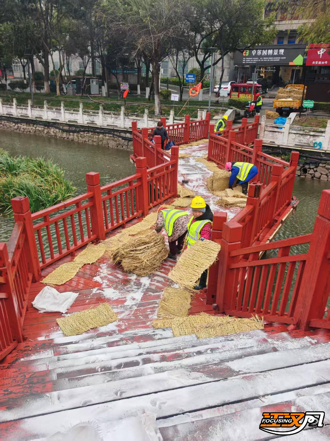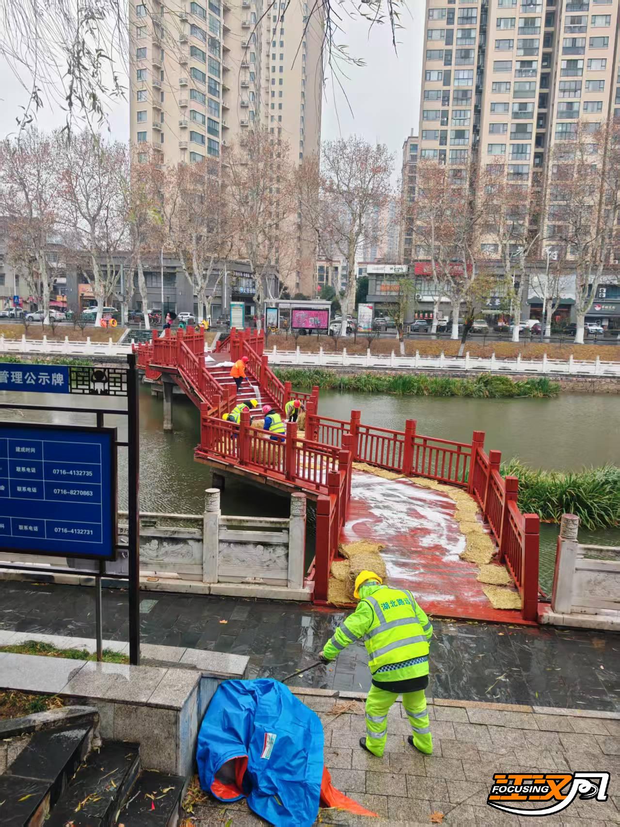 荆州市城管执法委及时处置九曲桥面结冰,保障市民出行安全,