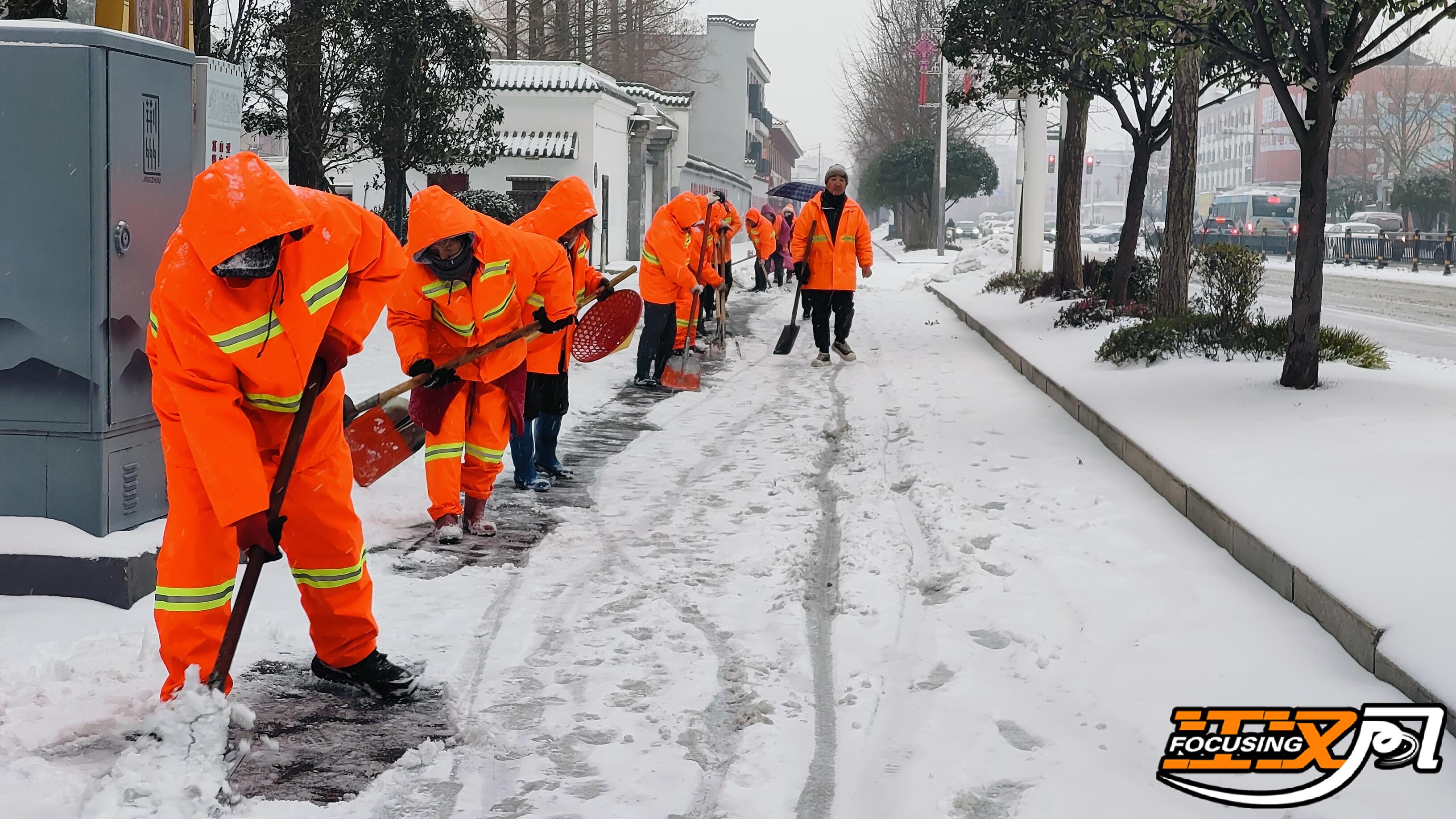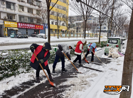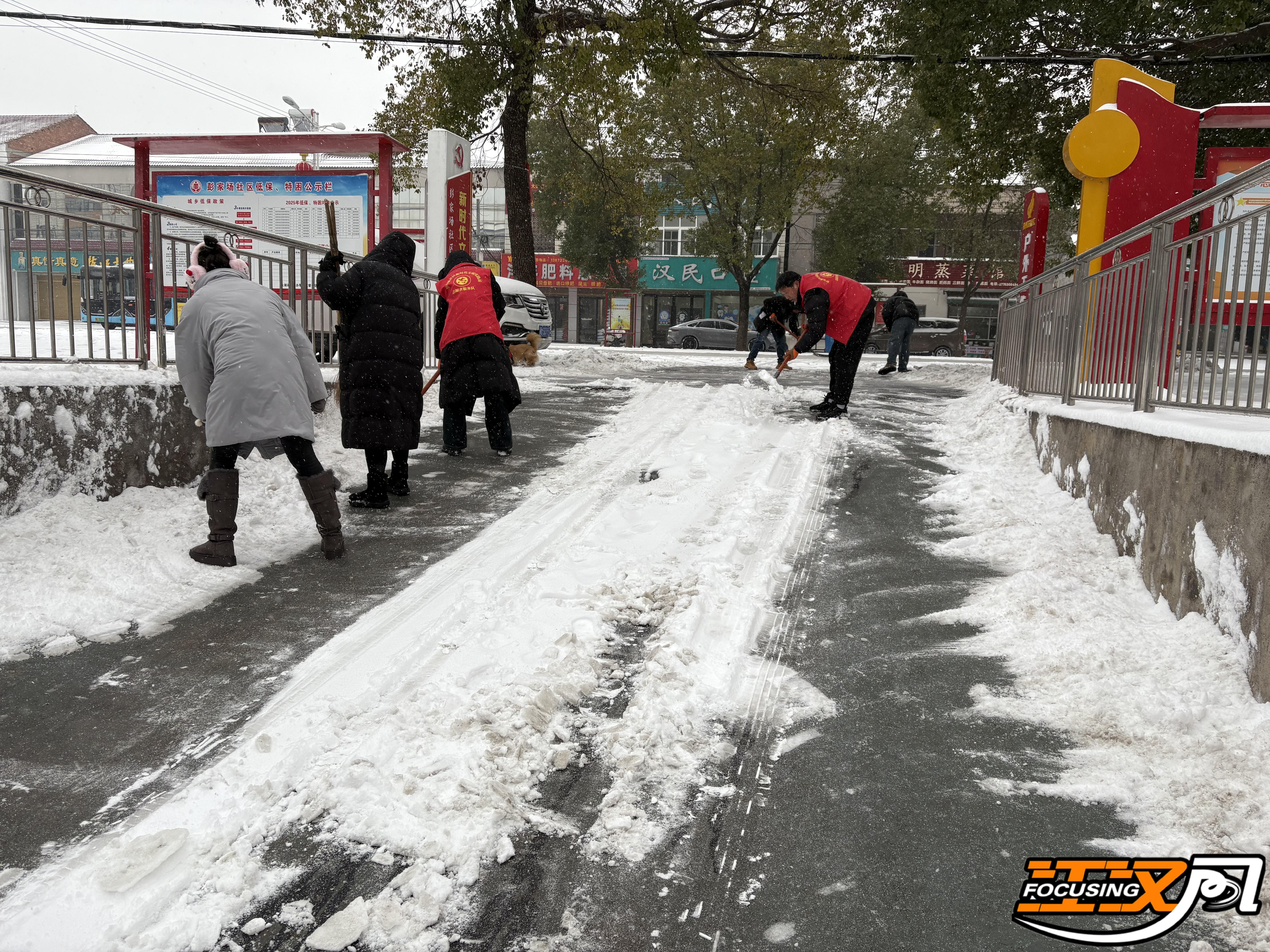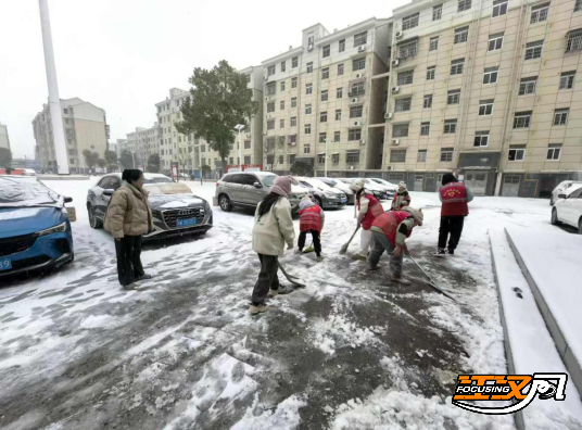 各乡镇(街道)第一时间集结力量,备足清雪工具,协调调配作业车辆,确保人员、物资及清雪设备全部到位。工作人员分片包干、合力攻坚,深入沿街路面、社区主干路等重点区域开展除冰扫雪作业。此外,工作人员还深入各小区,开展安全隐患排查,加固小区车棚,并以车灯照亮居民出行路,贴心守护群众夜间出行。