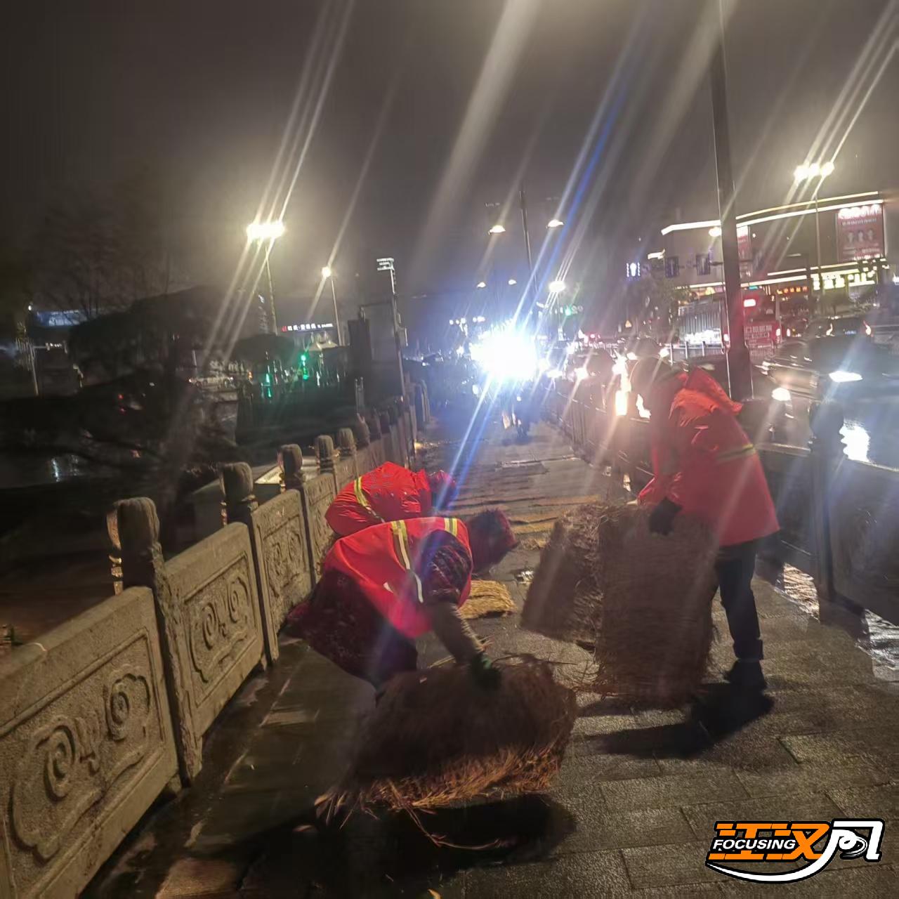 荆州区城管连夜应对寒潮 除冰防滑守护市民平安出行