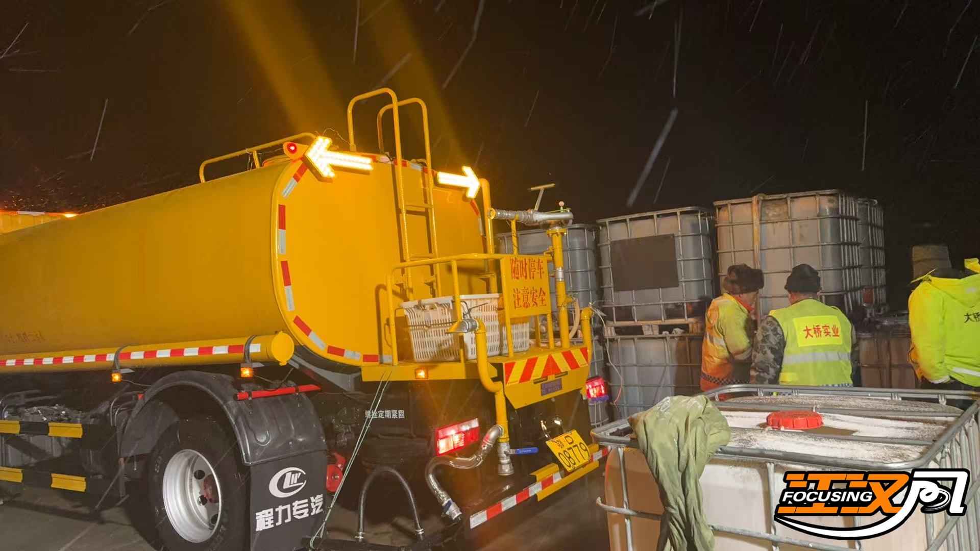 荆州市路桥公司迎战寒潮保畅通,大桥片区启动第二轮液体融雪剂撒布作业。