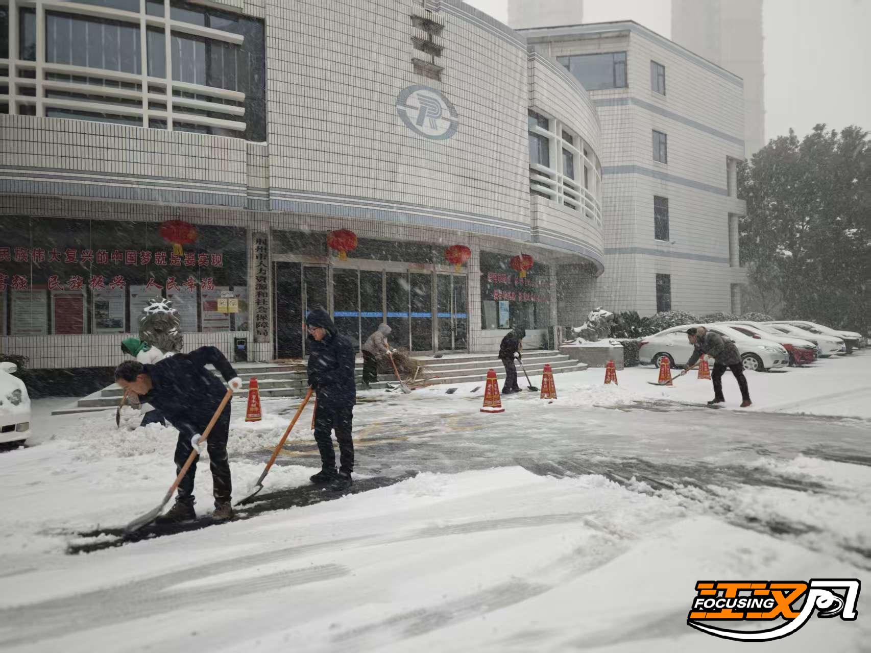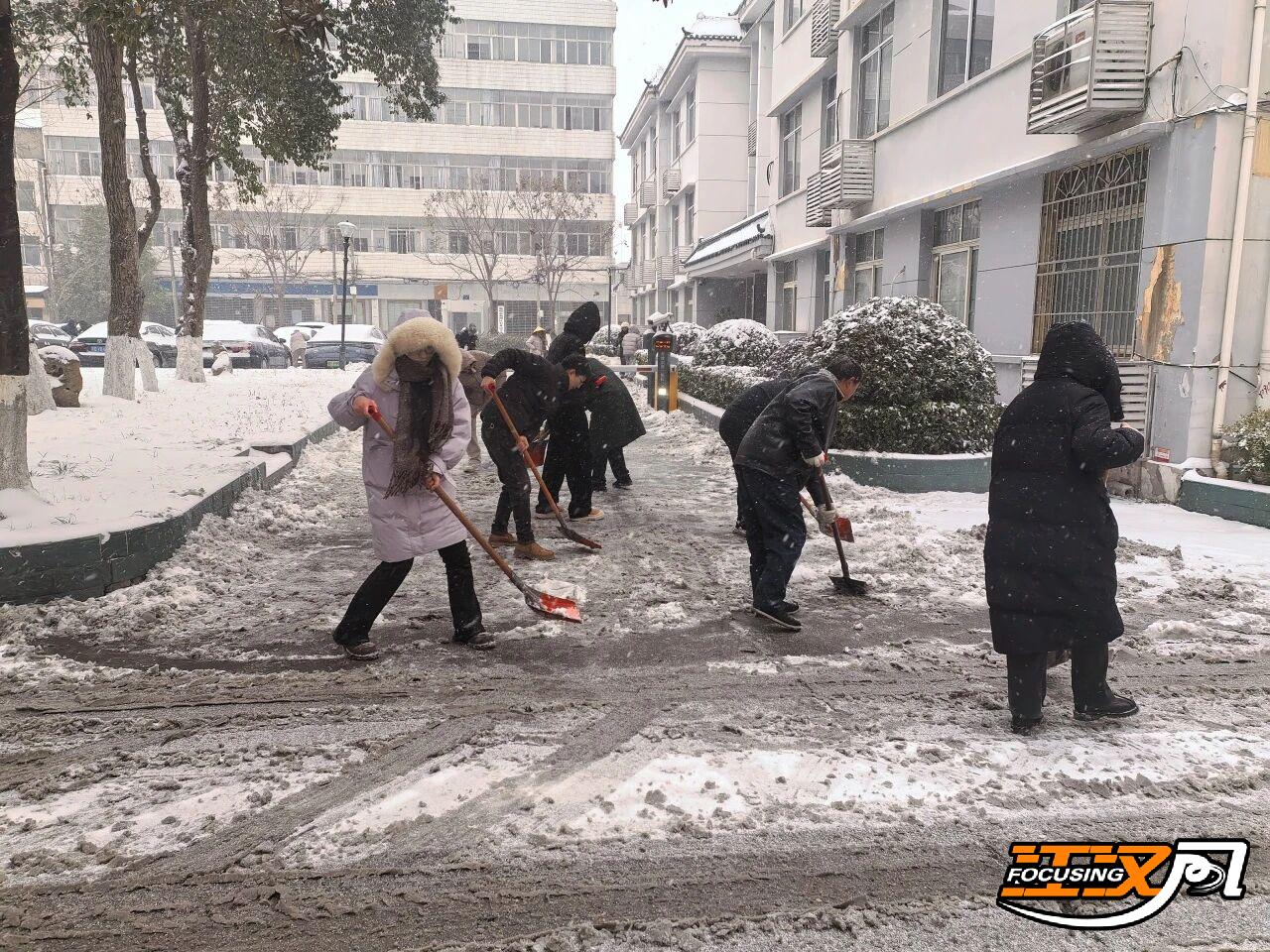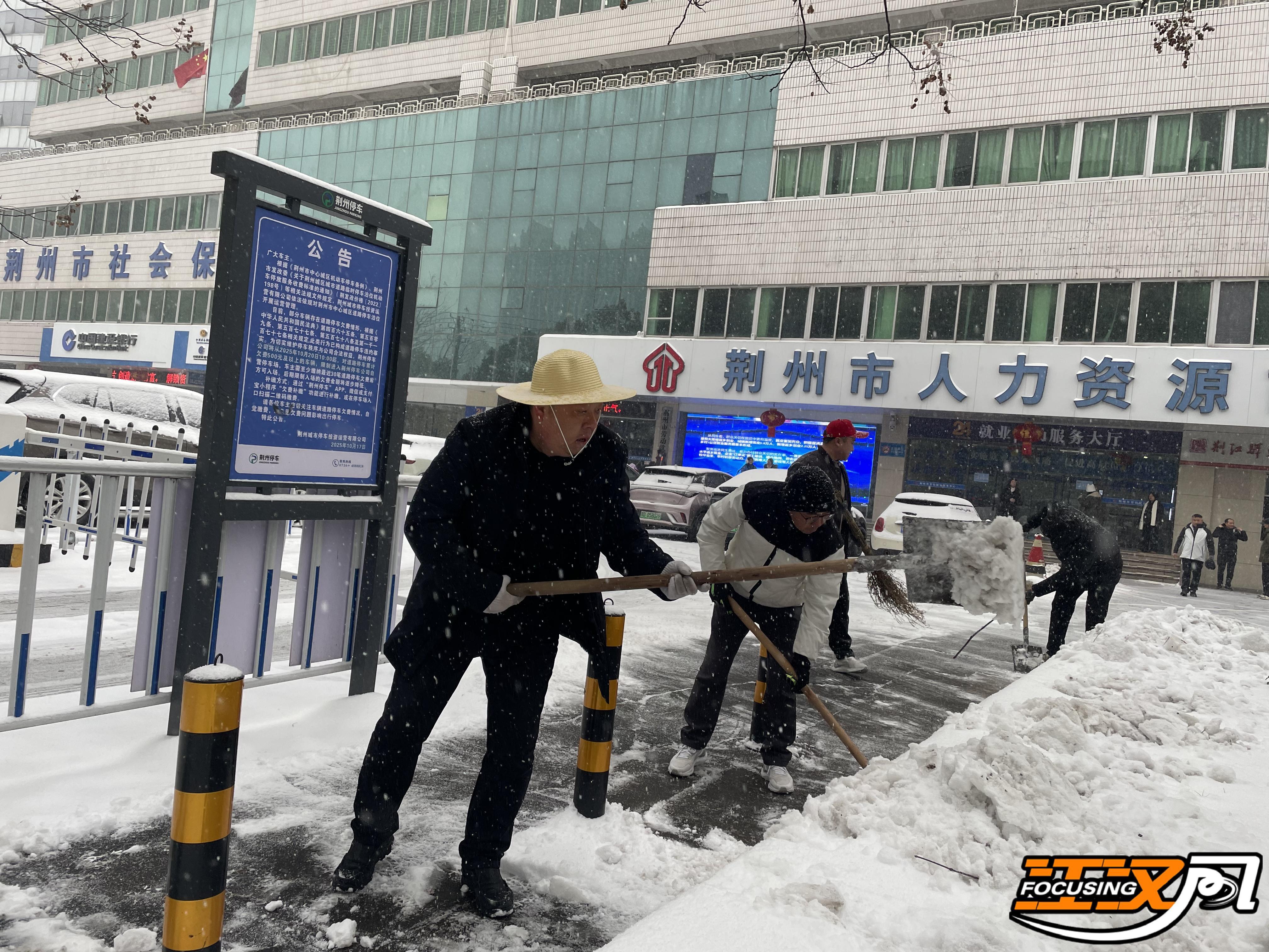 1月20日上午,荆州市人社局全体干部职工响应号召,提前到岗,积极在机关院内外扫雪除冰,保障市民顺利出行。(记者:王晓艳 通讯员:张乔萌)