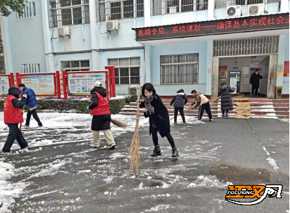 1月20日上午,市委政法委驻南门社区工作组组织机关党员干部到机关大院和荆南路社区开展铲雪活动。(通讯员 杜贵生)