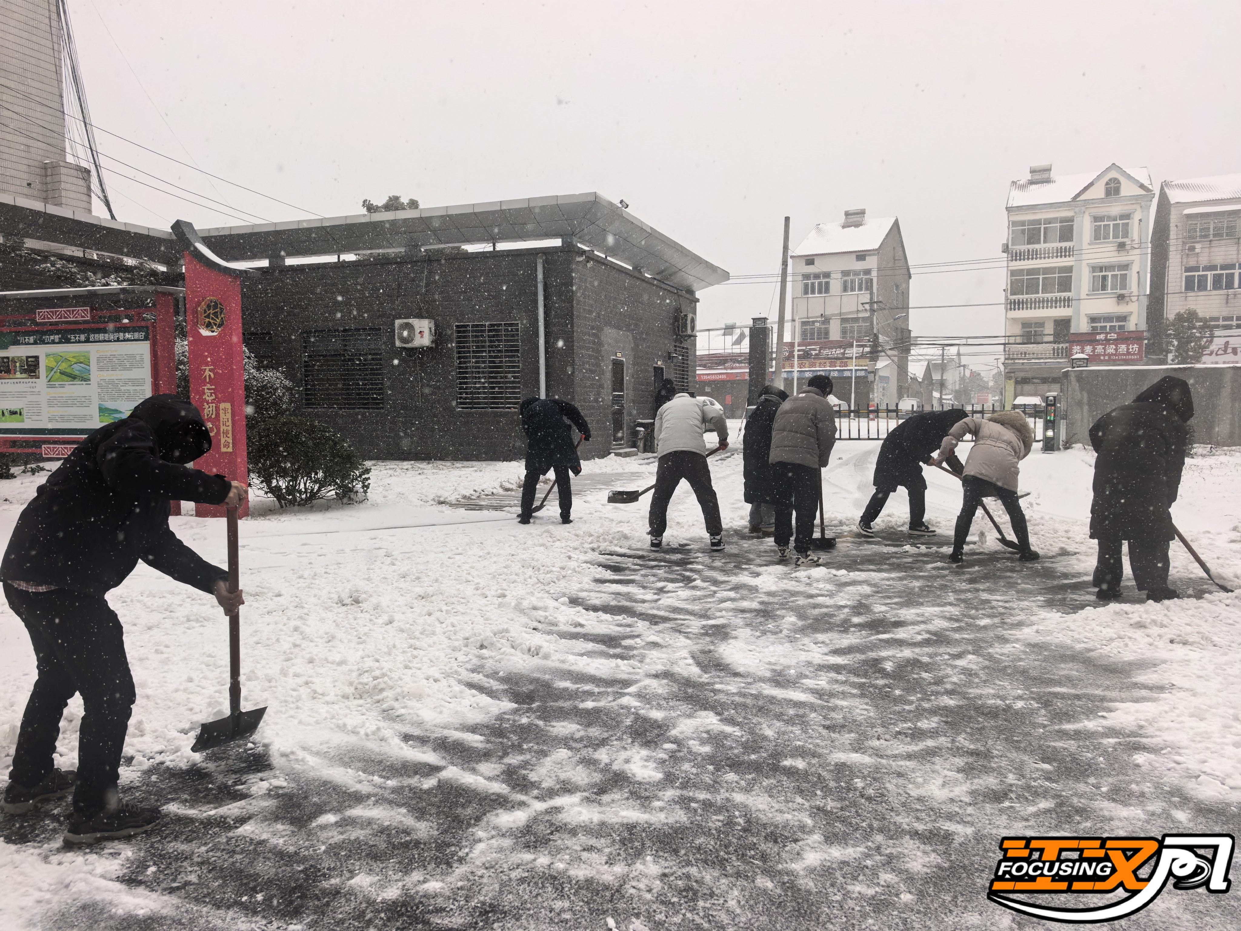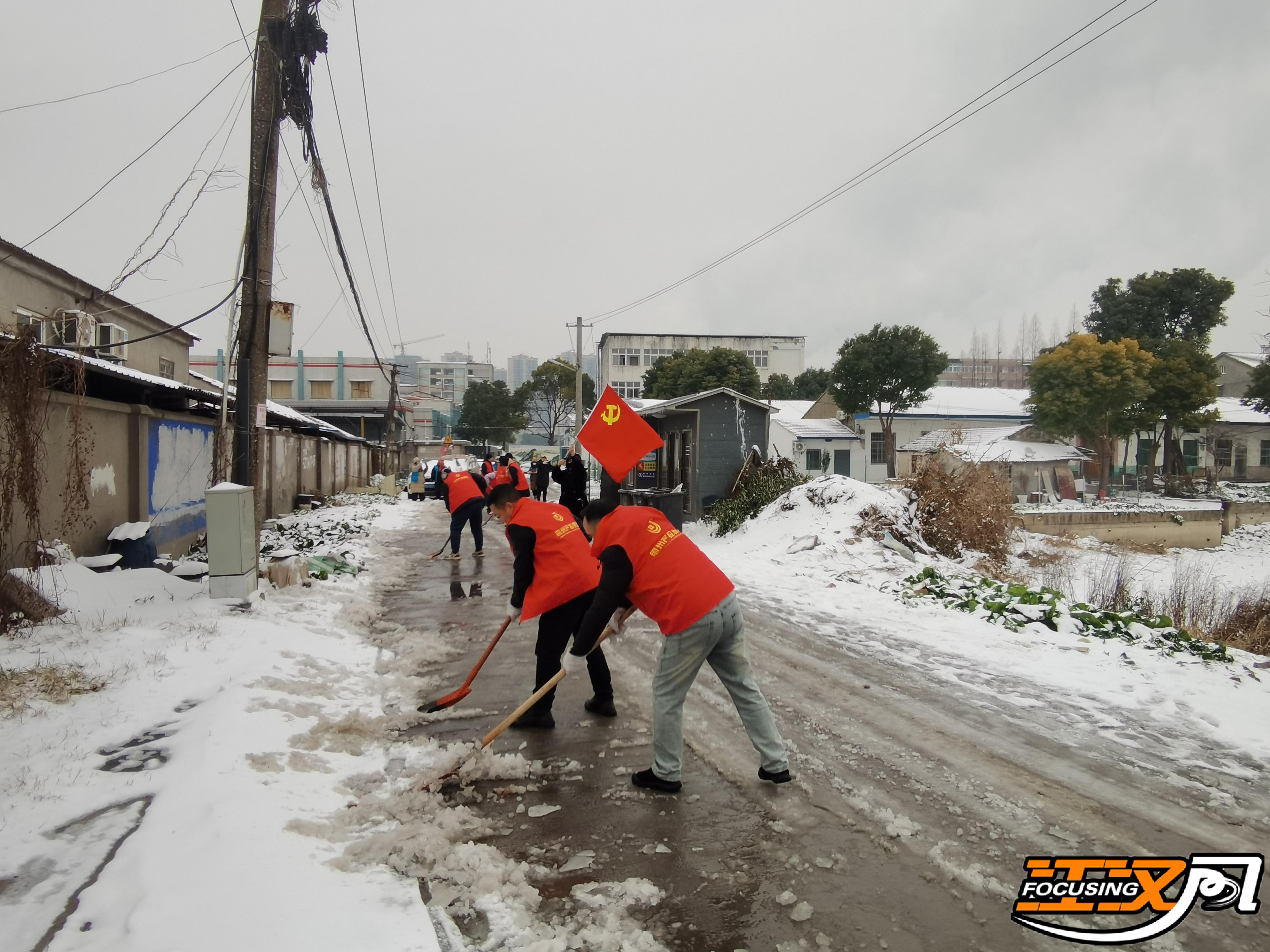 沙市区关沮镇组织党员干部群众集中铲雪。