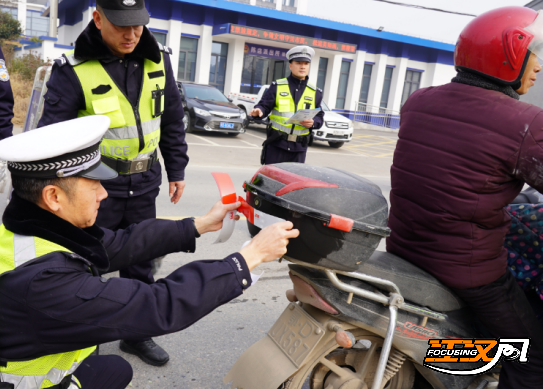 宣讲结束后,民警辅警迅速将宣传阵地延伸至路面,在辖区主干道同步开展实地宣传与“亮尾行动”。他们向过往群众发放交通安全资料和反光背心,讲解“一盔一带”安全知识,并为摩托车、电动自行车、三轮车等车辆免费粘贴反光标识,同时细致讲解“亮尾”在夜间、雨雾等低能见度环境下对预防追尾事故的重要作用,切实提升车辆辨识度,从细微处筑牢道路交通安全防线。