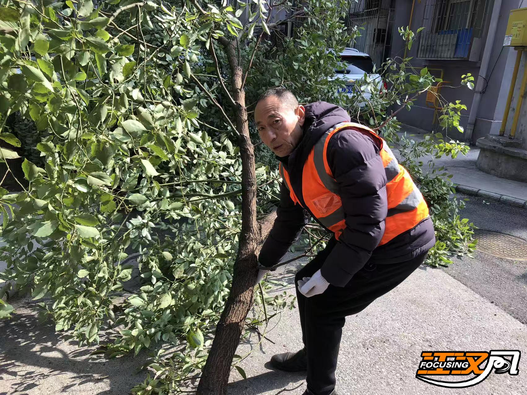 去年夏天,塔桥丰泽园居民反映树木遮光,刘成文接到通知后次日清晨就带队赶到,在烈日下高空作业半天解决居民烦心事。在老旧小区角落,面对生长杂乱、难以修剪的老树,他和队员也从不推诿,总是耐心梳理枝条,完工后彻底清理现场,不留一片残叶。