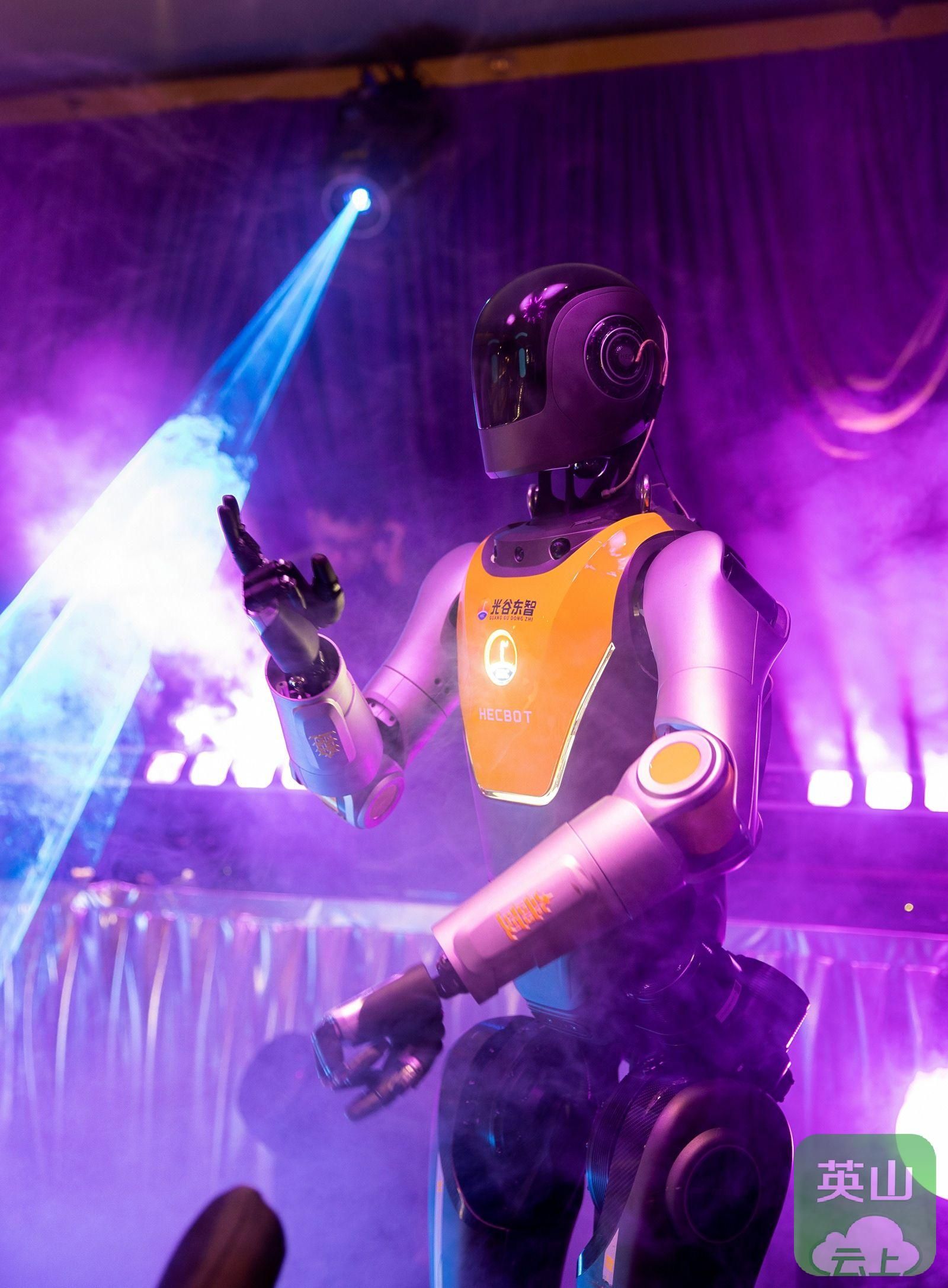 (光谷人形机器人7S店的机器人在年会表演。胡龙丹供图)
