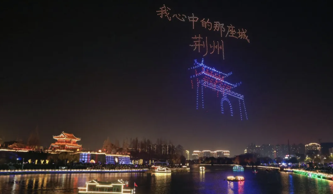 3.央媒关注荆州!千架无人机“凤舞九天”,演绎“赤黄红”英雄印记