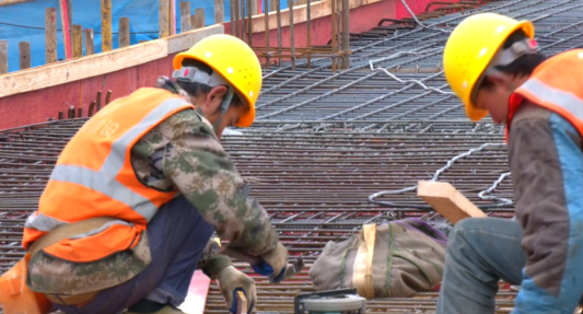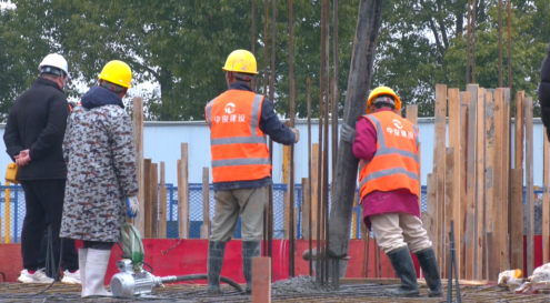 走进项目施工现场,只见塔吊林立、机器轰鸣,施工人员分工协作,绑扎钢筋、浇筑混凝土等各项工序有条不紊推进。
