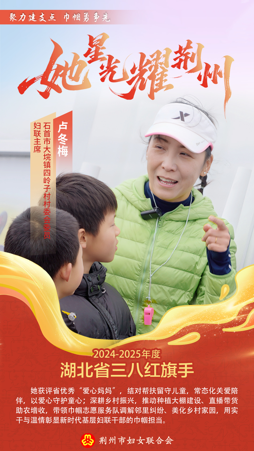 她不光守护童心,也为村庄发展奔走——积极推进土地流转,向上争取资金建成200多个标准化种植大棚,打造岭上瓜蔬特色产业基地,主动学习电商知识,化身“田间主播”推介本地农特产,为农产品打开新销路。她还带领巾帼志愿者投身人居环境整治,组建手工、文艺队伍开展技能培训,调解邻里矛盾纠纷,用心用情服务妇女群众。2025年,卢冬梅荣获湖北省优秀“爱心妈妈”称号。
