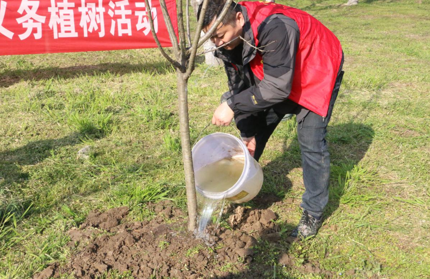 参加植树的志愿者三五人一组,分工协作,配合默契。大家干劲十足,现场井然有序。大伙提前挖好树坑,将刚刚运到的樱花树苗小心放入坑中,拆除树苗根部的布条,确保根系能够自由舒展。随后,有的挥锹铲土,有的填土,有的浇水……每一道工序都做得一丝不苟,现场不时传来劳动的欢声笑语。