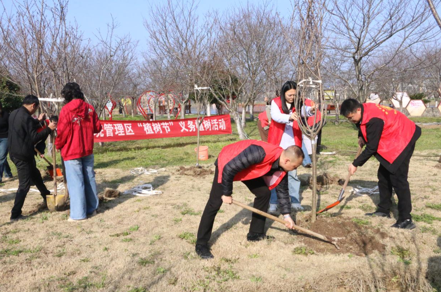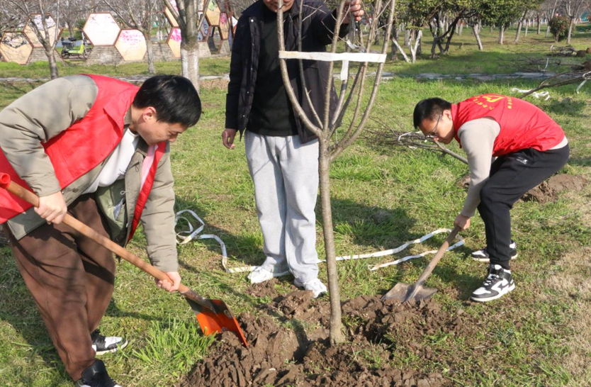 江汉风报道:春回大地,万物复苏,正是植树造林的好时节。3月11日上午,六合垸管理区樱花谷一片热火朝天,机关工作人员、志愿者30余人在此开展义务植树活动,在樱花谷以东空地栽植樱花树苗120余棵,为春日里的樱花谷再添一片新绿。