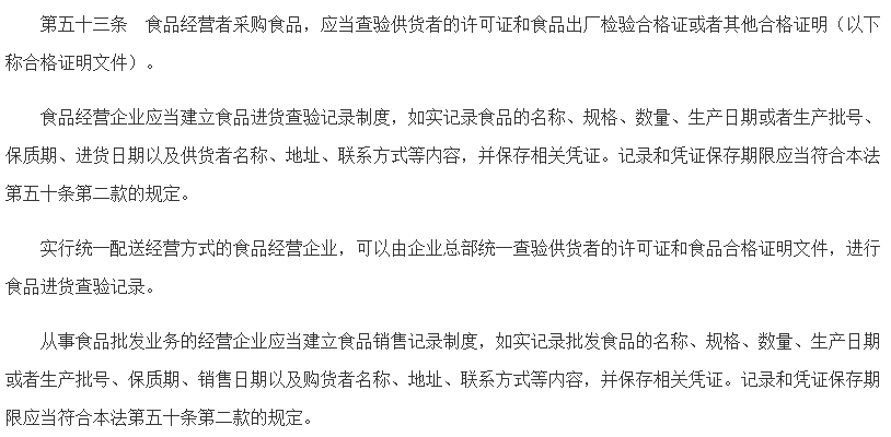相关法条:《中华人民共和国食品安全法》第五十三条、第五十四条、第六十七条。