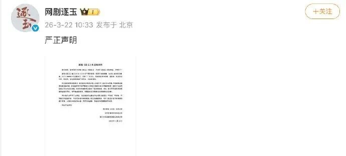 3月21日,《逐玉》盗版全集疑似流出,引发热议。22日上午,《逐玉》官方微博发布严正声明,呼吁抵制盗版内容,将严查盗版来源,保留追究刑事责任和赔偿损失的权利。