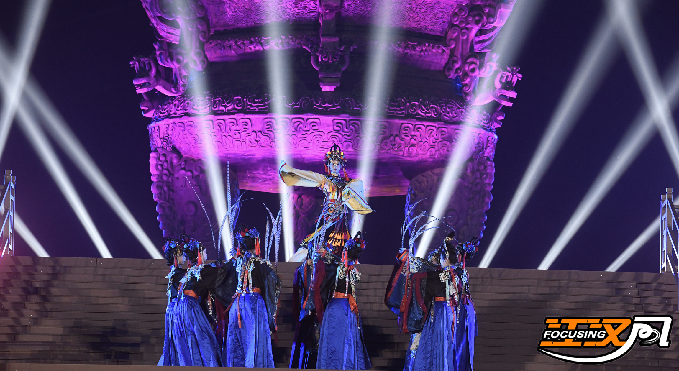 夜幕低垂,华灯初上,楚文化数字产业园内矗立的楚鼎、古朴雅致的连廊阙楼,与灵动光影完美交融,绘就一幅古今辉映的楚地盛景图。主秀《楚乐八百年》在楚鼎广场开演,讲述了从肃穆庄严的凤舞祭拜,到热火朝天的青铜冶铸,再到气势磅礴的中原争霸,直至盛世礼乐的恢宏华章的故事,全方位展示楚地鼎盛时期的壮阔历史。