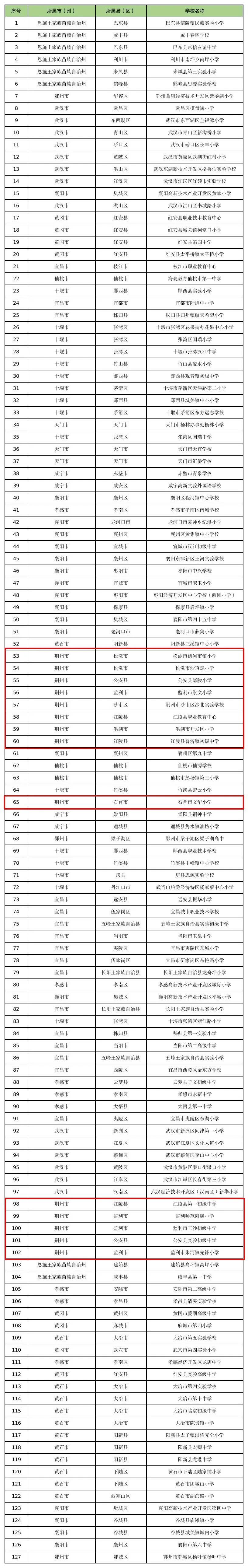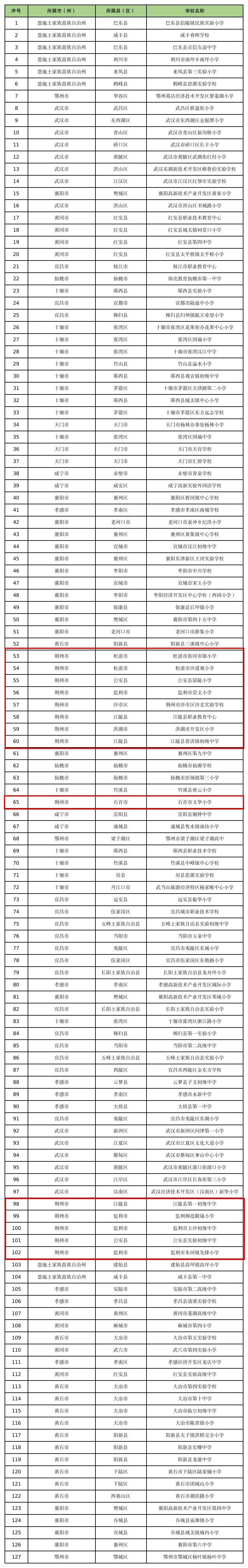 湖北有127所学校入选