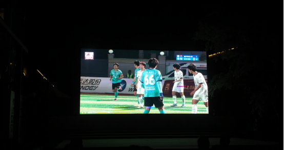 夜幕下,屏幕上的绿茵对决扣人心弦,观众目光紧盯着大屏。每当球员带球突破、射门瞬间,人群中便爆发出阵阵欢呼与叹息,热烈的观赛氛围在草地上弥漫开来。