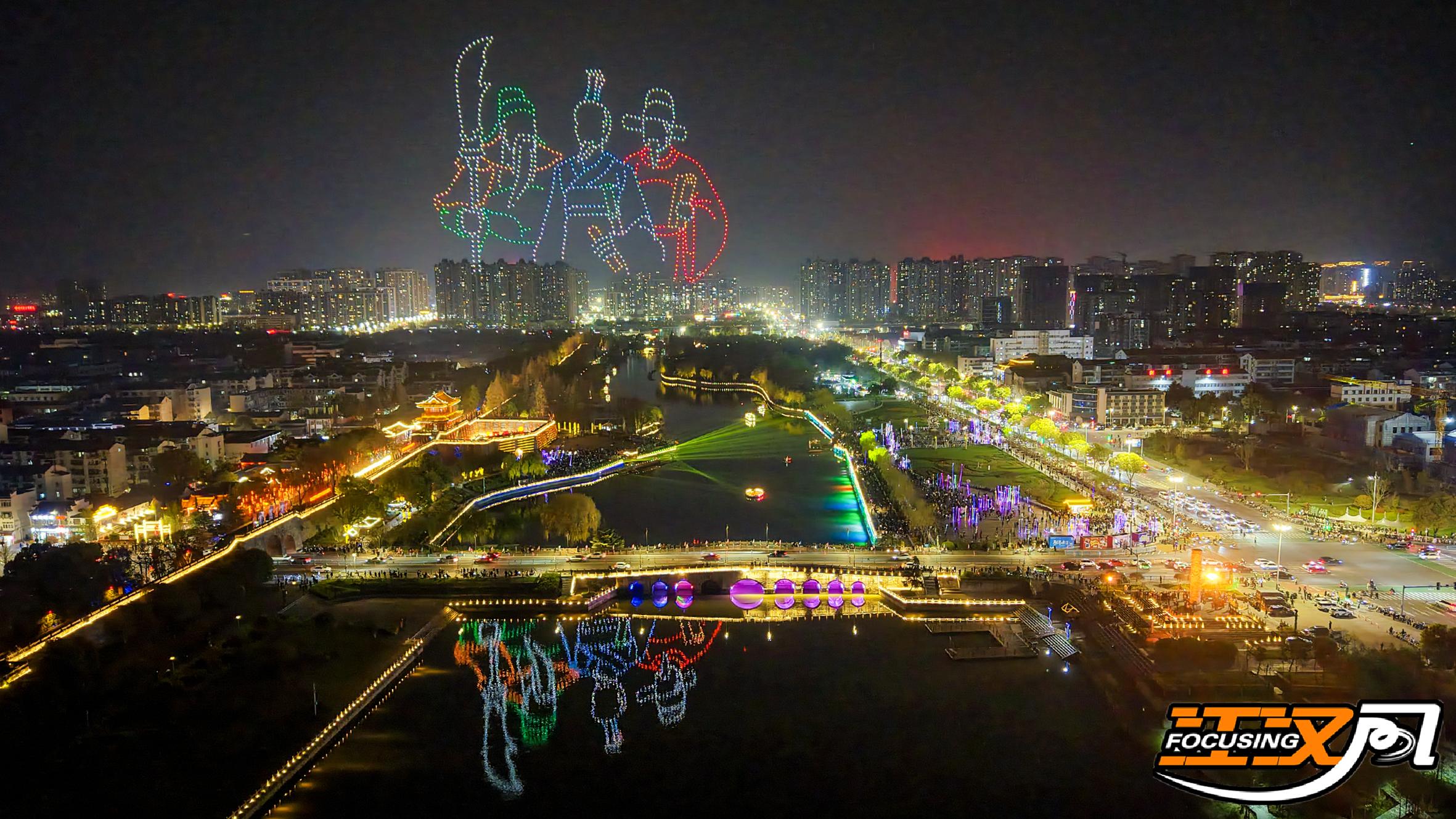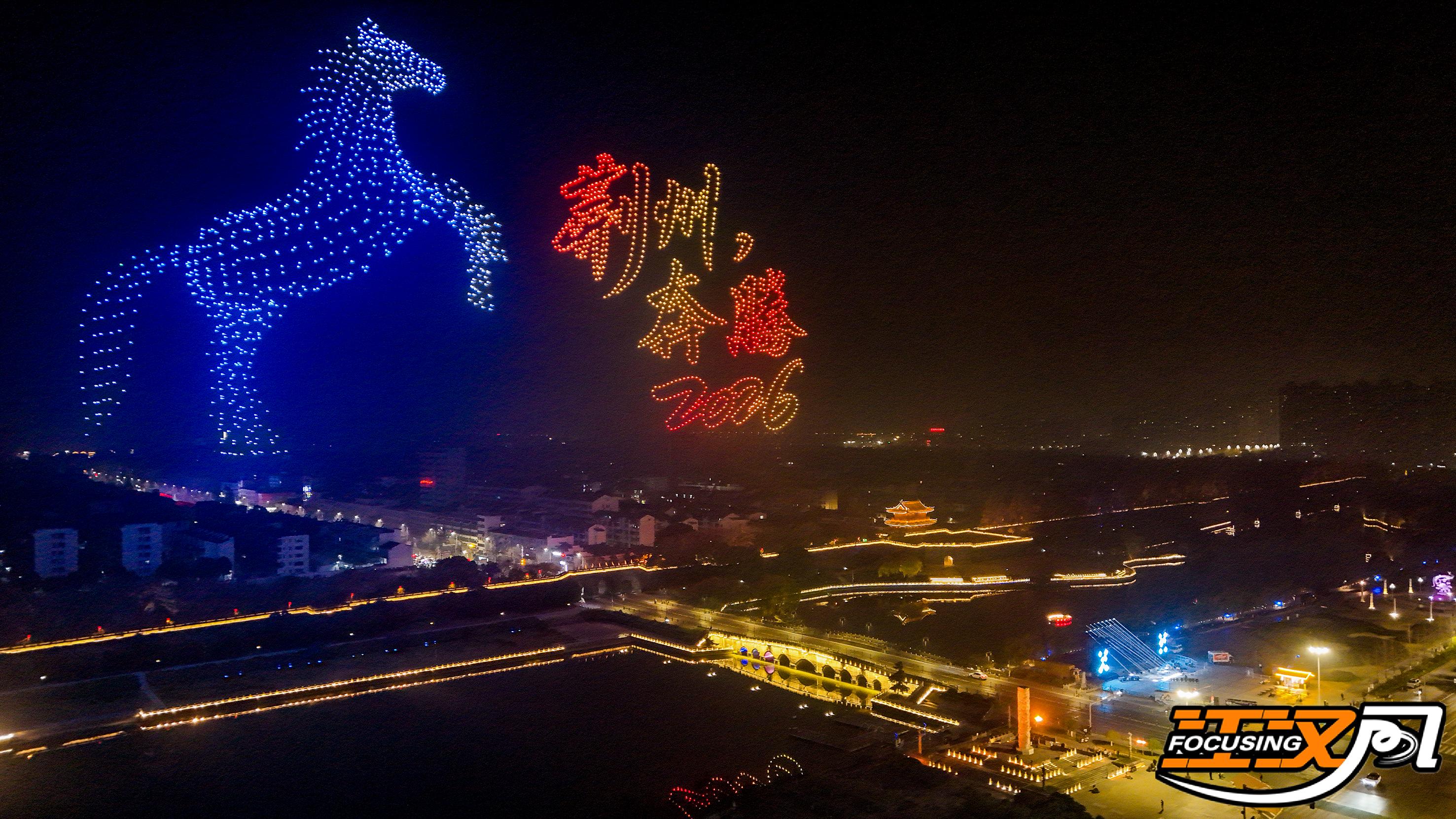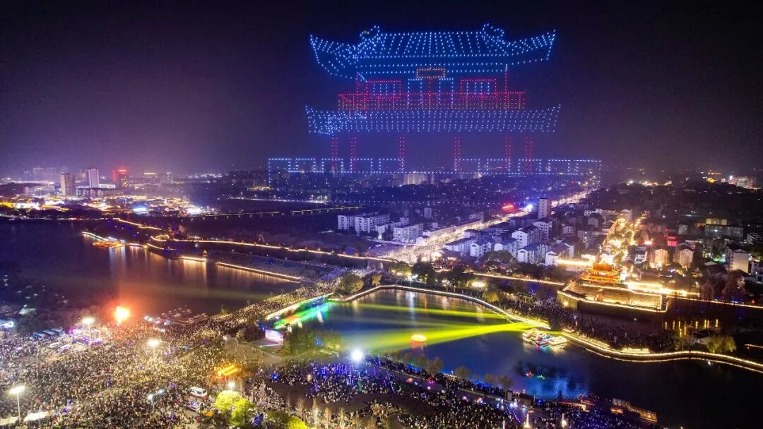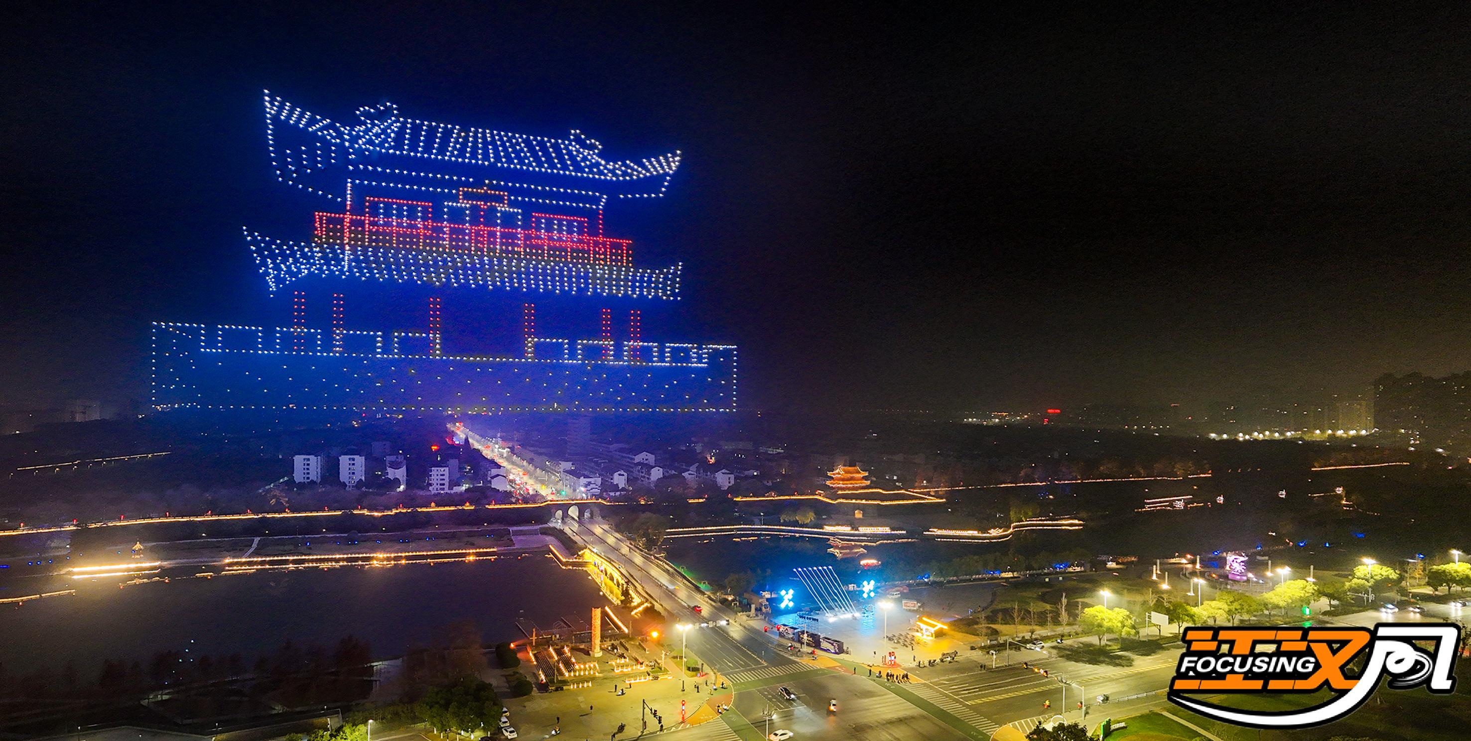 千架无人机“凤舞九天”光影秀在古城东门震撼上演