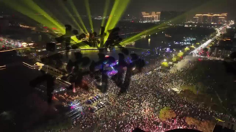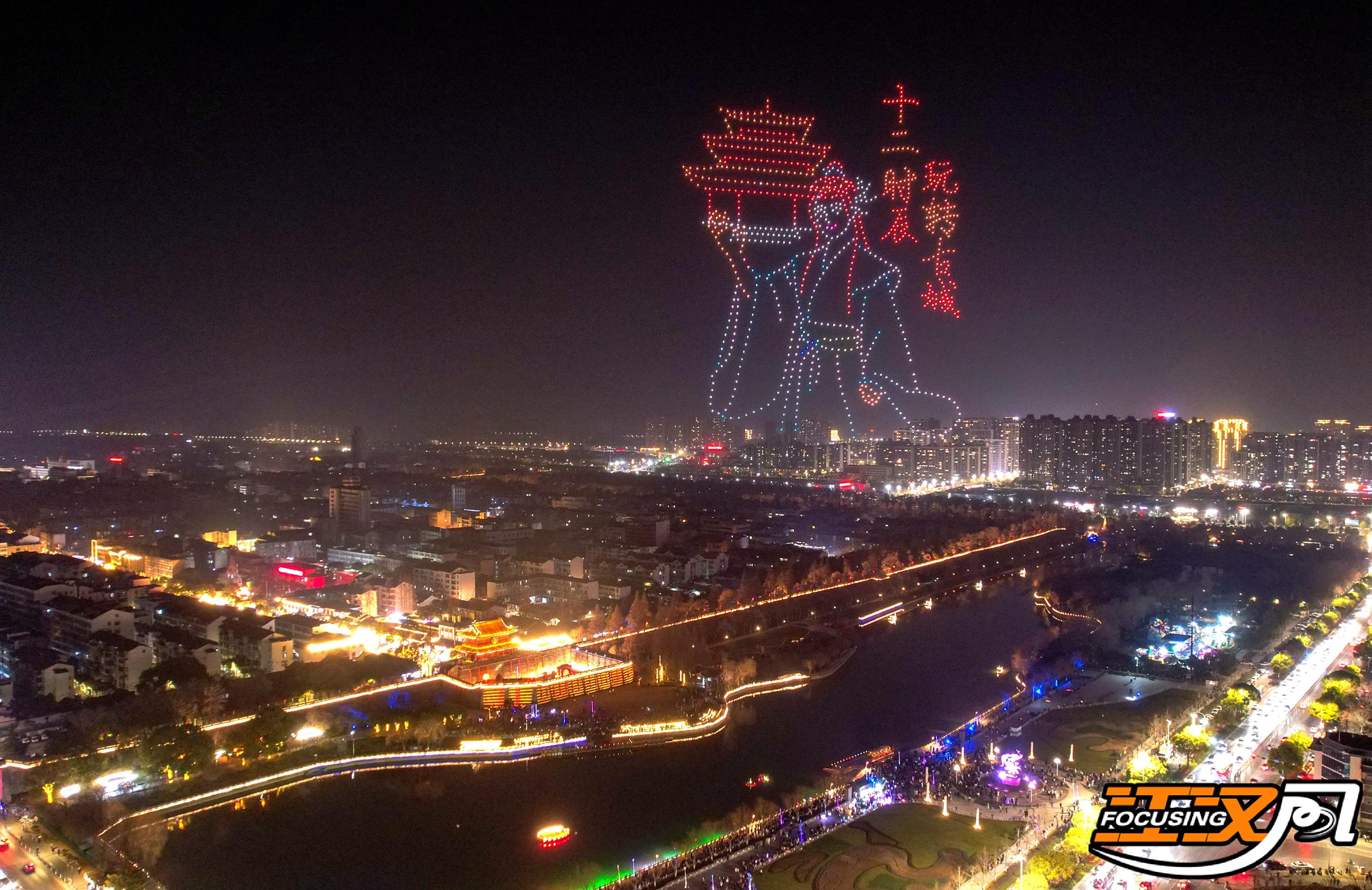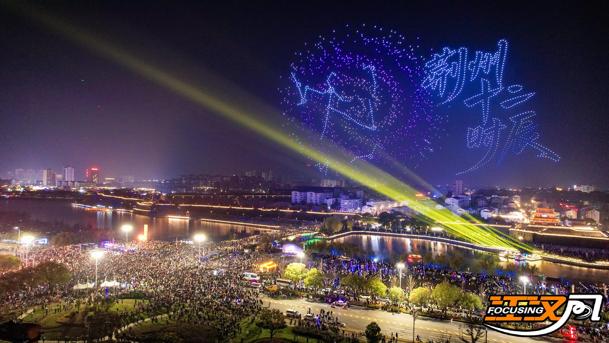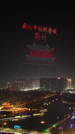 东门夜空被无人机点亮 万人见证 荆州专属的2026!