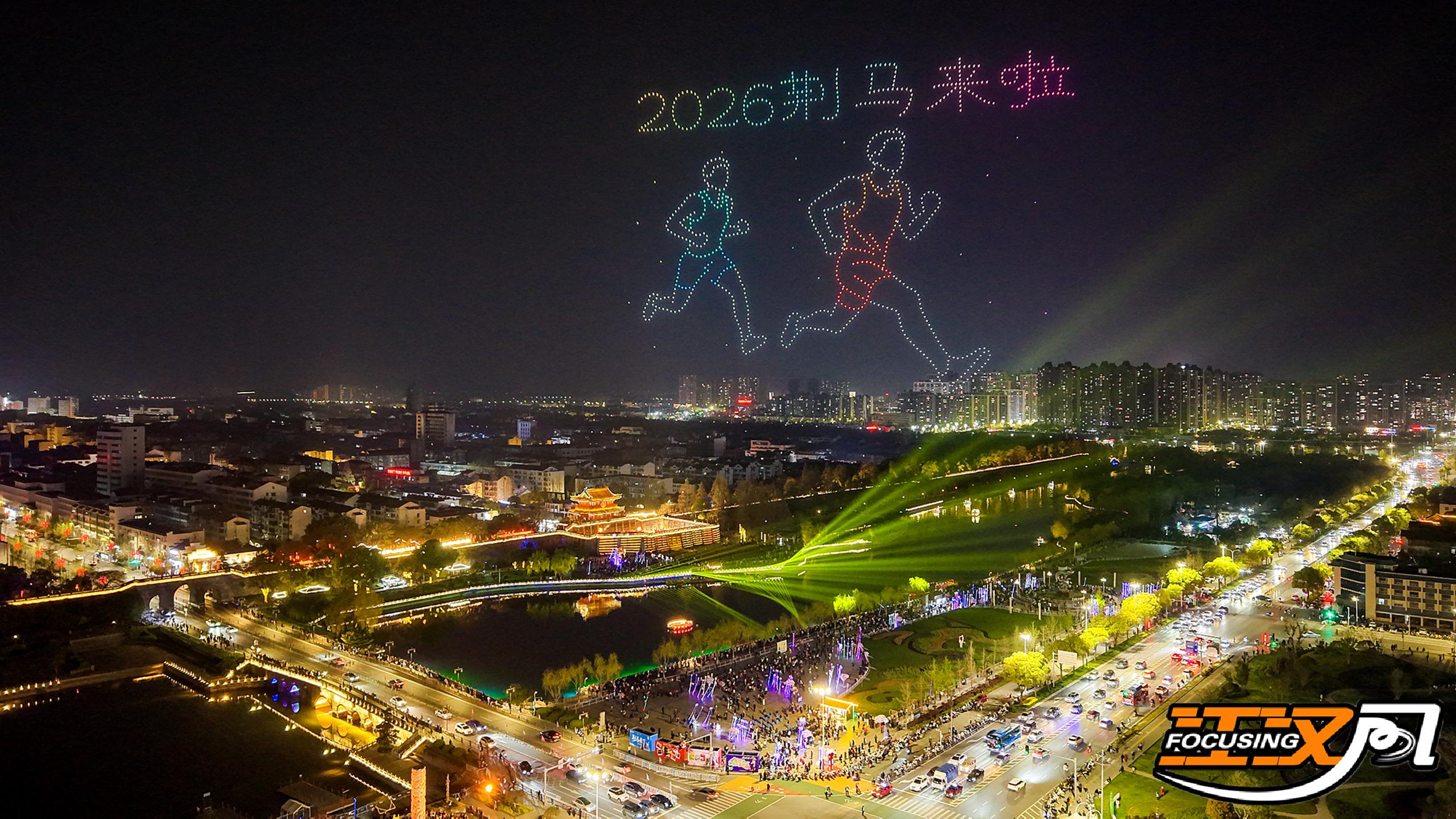 点亮古城夜空!2026架无人机荆州东门跨年预演