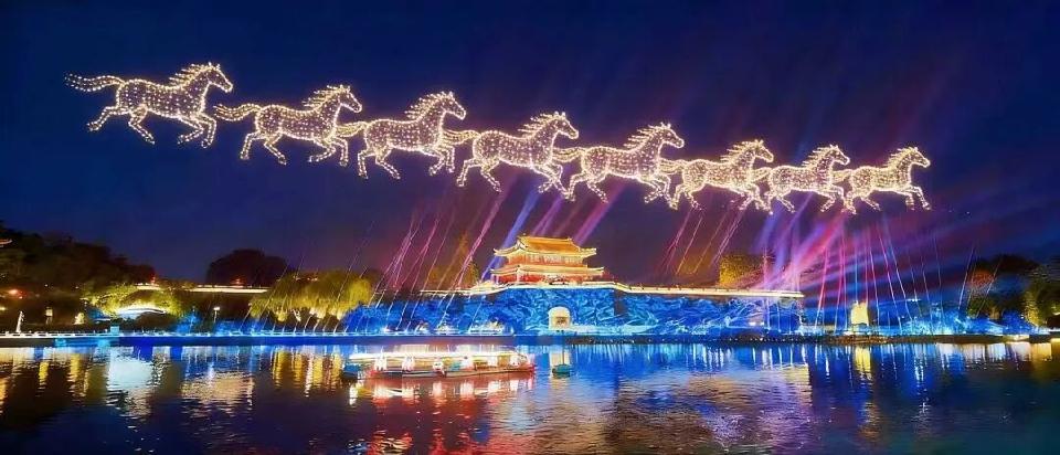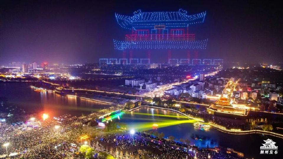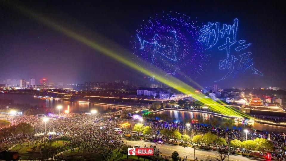 点亮“荆马之夜”,荆州十二时辰无人机秀璀璨上演