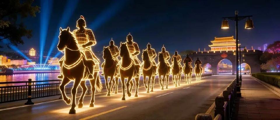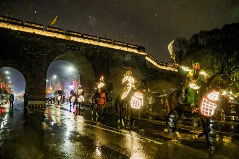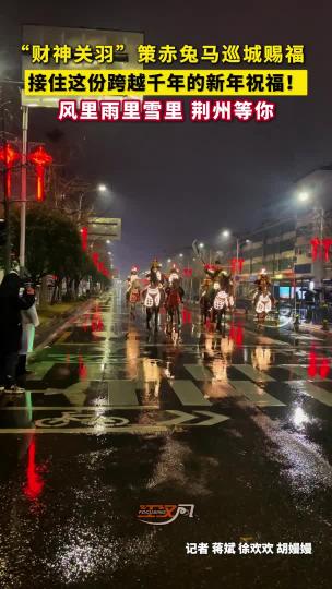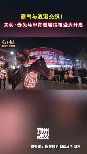 跨年之夜,“财神关羽”策赤兔马巡城赐福,甲胄凛然仿佛穿越时空