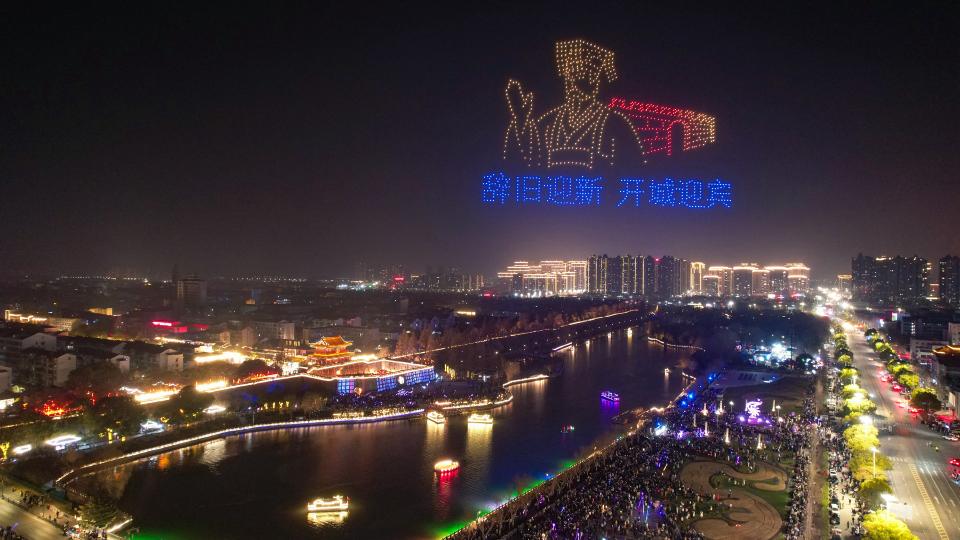 2026架无人机点亮荆州夜空,关羽巡城拉开元旦盛宴