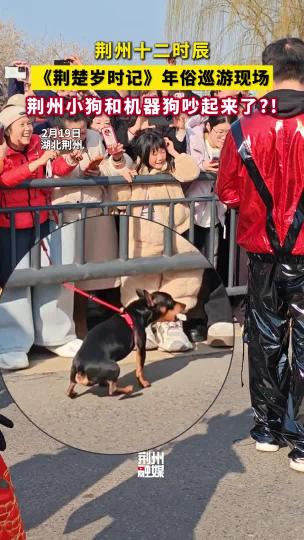 什么!《荆楚岁时记》年俗巡游现场 荆州小狗和机器狗吵起来了?