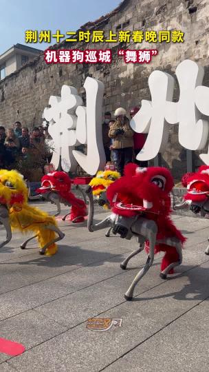 荆州十二时辰上新春晚同款,机器狗巡城“舞狮”